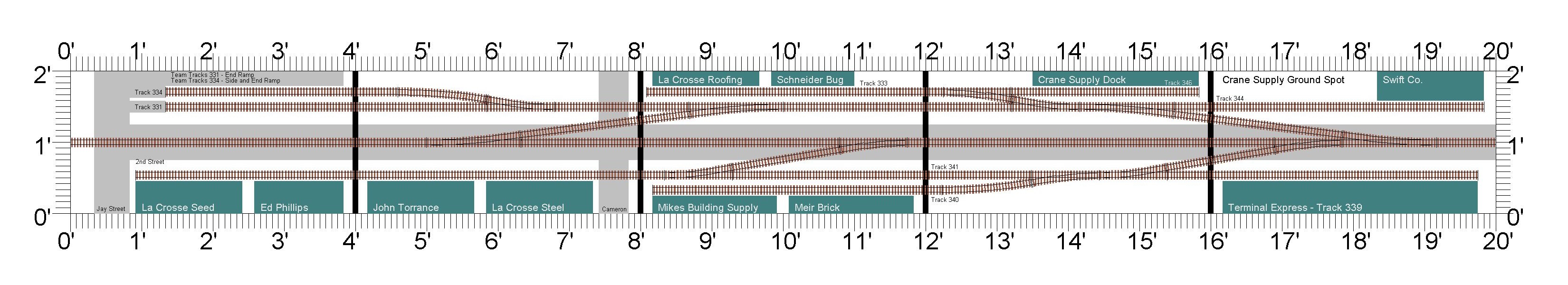 A crew will arrive with up to 10 cars to spot at local industries. The track plan features two run-around tracks but also two switch backs to make the work a little more complicated. Additionally, once a car is spotted it cannot be moved again, so working track 341 will require some planning.