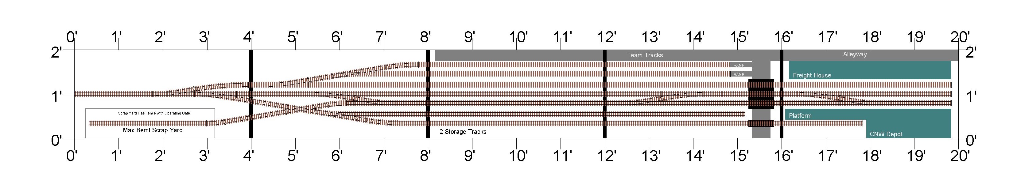 The design of this yard will also allow it to be used as a staging yard for operations, or a crew can be assigned here to build up trains for crews to switch other areas. I chose to model this yard instead of the much larger Chicago, Burlington & Quincy yard due to space consideration on the module. To facilitate switching Max Beml Scrap, the lead was moved to connect to the end of the Depot track so the storage tracks can be used as needed.